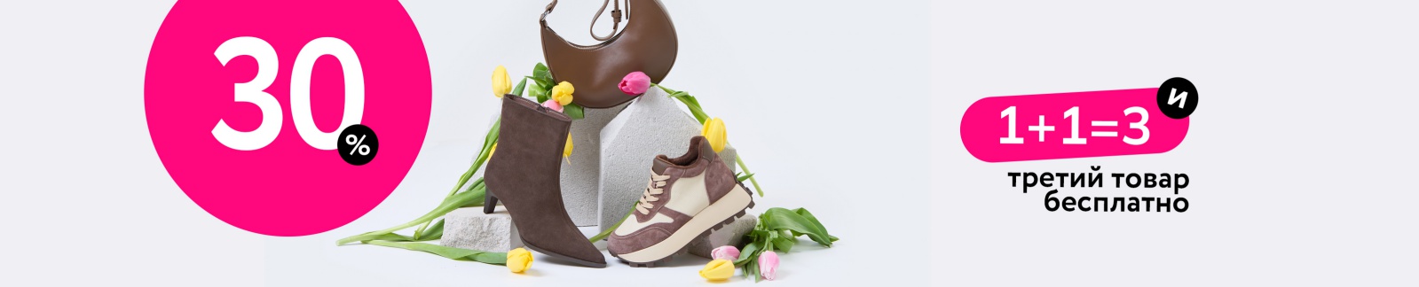 Скидка 20% на всю обувь и аксессуары, а 3-й товар бесплатно