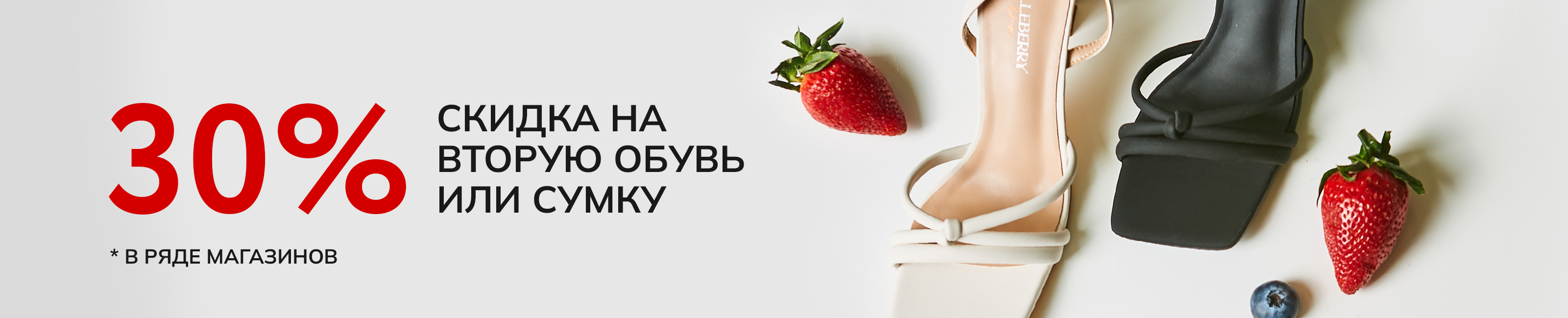 Скидка 30% на вторую пару обуви или сумку в чеке!