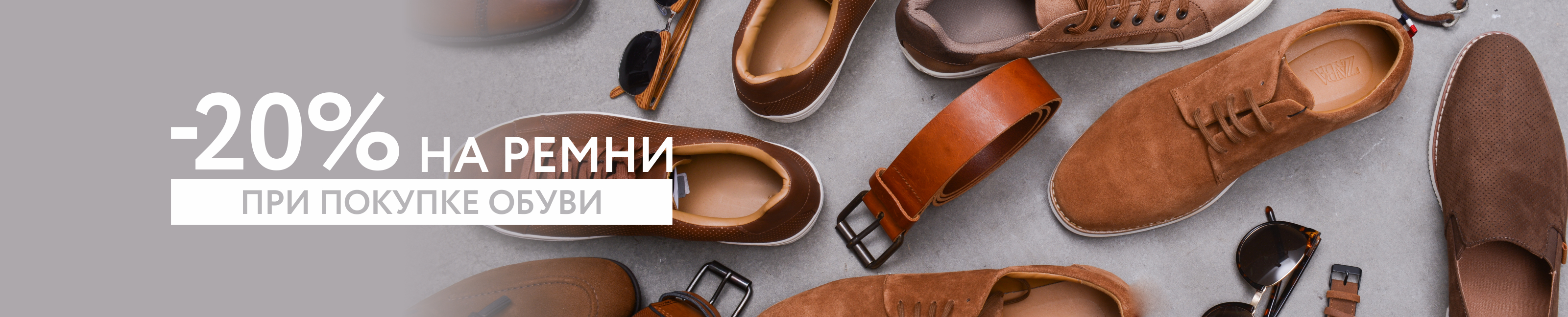 Условия акции: : при покупке пары обуви, на ассортимент ремней с белыми ценниками предоставляется скидка 20%. Скидка не суммируется со скидкой по карте покупателя. Товары по акции могут быть представлены в рассрочку.