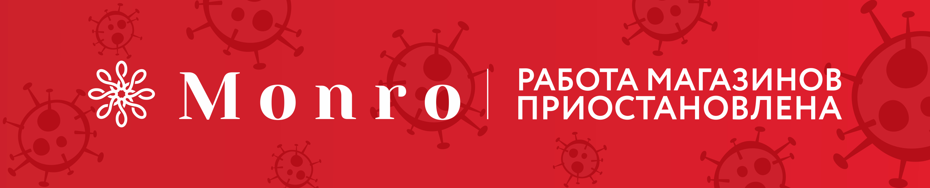 С 30.03 работа магазинов MONRO приостановлена по указу государственных органов управления в связи с принятием мер, предотвращающих распространение нового вида коронавирусной инфекции. Сроки ограничения работы регламентируются постановлениями губернаторов каждого из регионов. Функция предварительного заказа товаров для примерки на сайте также временно отключена.