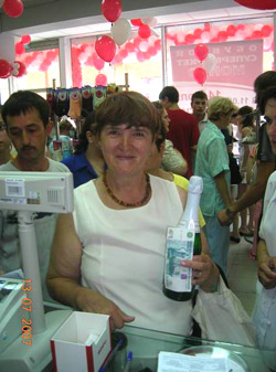 Праздничное открытие «Монро» традиционно сопровождалось разрезанием ленточки, открытием шампанского и угощением покупателей.